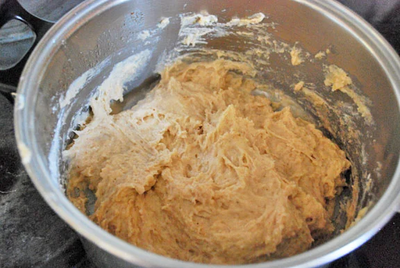 - Stir in the remaining ¼ cup flour, the baking powder, baking soda, and salt. If the dough is still too wet to work with, add in a little more flour.