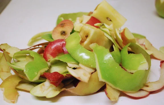 Begin making this deliciousness by peeling some apples.