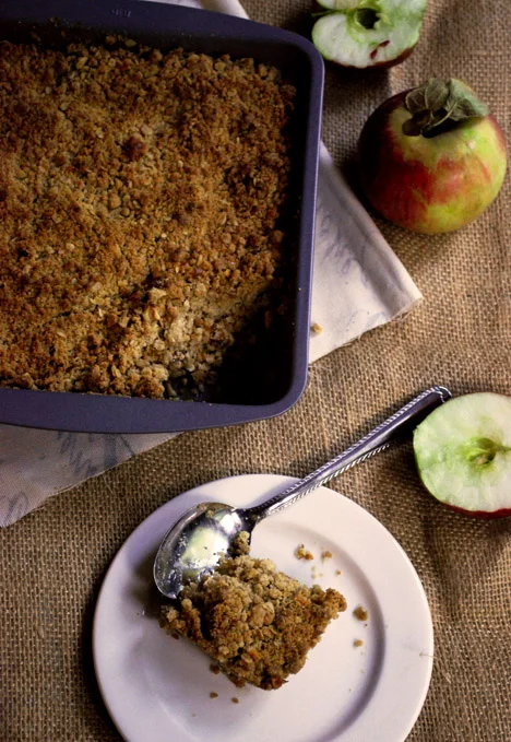 I considered dressing up this recipe, adding candied ginger or maybe pears, but I decided to stick to the bare minimum and just appreciate apple crisp for the simple, yummy thing it is. This is one of those recipes that seems to magically take a few very basic ingredients and turn them into something delicious.