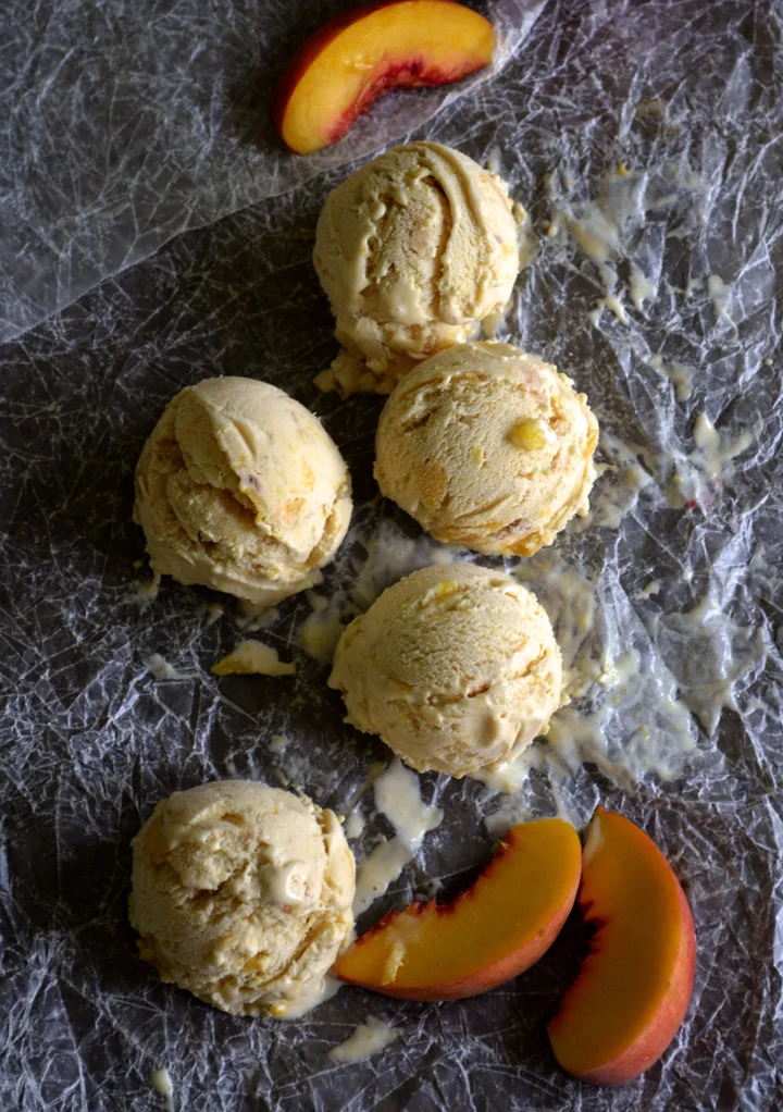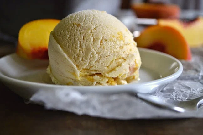 So here it is, fresh peach ice cream without any of the bells and whistles I usually add. This ice cream really lets the peaches shine through, so be sure to only use sweet, juicy peaches you would want to eat on their own
